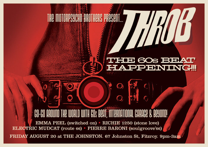 THROB. THE 60s BEAT HAPPENING! Aussie, British, American, European... you got it all!... a 60s vinyl freakout. Fri Aug 20 @ The Johnston w/ DJ’s Pierre Baroni, Electric Mudcat, Emma Peel and Richie1250